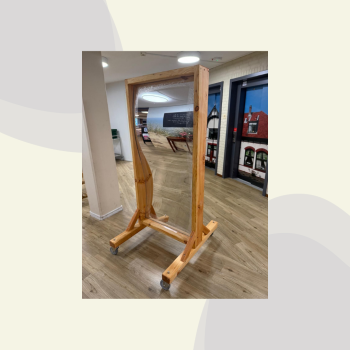 Bij locatie Sonnevanck zorgen de verrijdbare beleefproducten van de fitnesstuin het hele jaar door voor plezier en beleving. In de lente en zomer staan ze buiten in de beweeg- en beleeftuin, maar zodra het kouder wordt, worden ze gewoon naar binnen gereden. Een voorbeeld is deze lachspiegel; een echte favoriet bij bewoners én bezoekers. Waar het ook staat, een glimlach is gegarandeerd!