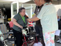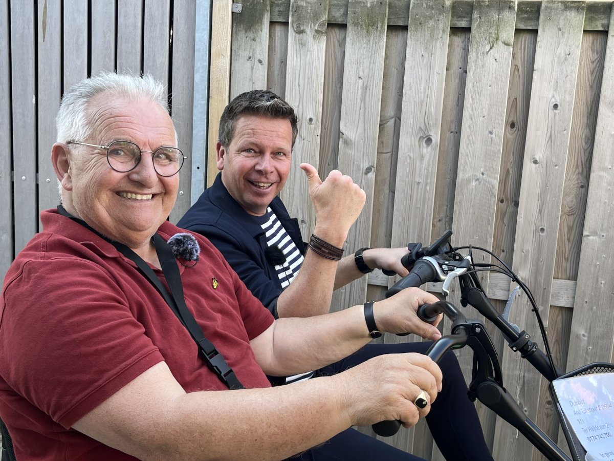 De heren Storm en Kuiper van het Arie Kuiperfonds hadden de eer om de duofiets te onthullen. Lex Thoen gaf aan nog een ‘kleine verrassing’ te hebben. De verbazing en het enthousiasme was groot toen er nog een nieuwe rolstoelfiets naar voren werd gereden. Wat een fantastische verrassing! Rien Brederoo, bewoner van Duinhof, had de eer om de eerste rit te maken op de duofiets waar hij enorm van genoot.