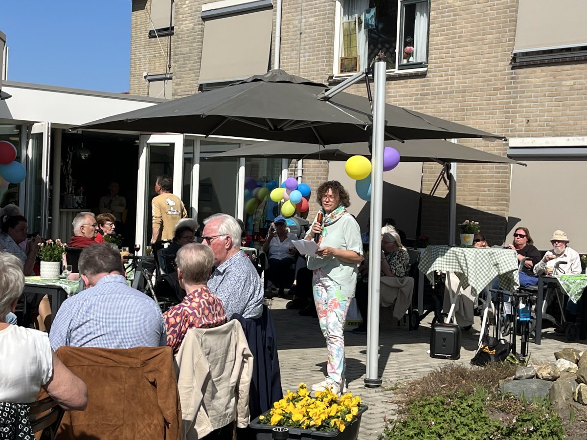 Jacqueline Vingerling, begeleider welzijn en coördinator vrijwilligers Duinhof en De Opmaat, heette iedereen van harte welkom op de prachtige zonnige lentedag. Ze benadrukte het belang van de vrijwilligers waar we ontzettend blij mee en trots op zijn. Lex Thoen is van een vele vrijwilligers met passie, geduld en liefde voor zijn medemens; een vrijwilliger die een bijzonder project voorzette, namelijk de Sjaakies.
