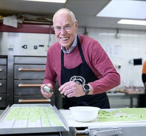 Frans komt iedere woensdag rond half 10 naar Ontmoetingscentrum Dock van Delft om een bijdrage te leveren aan het koken. Hij drinkt eerst een kopje koffie mee op de huiskamer, om vervolgens aan het werk te gaan. Zo zegt Frans: “De belangrijkste reden is dat ik bezig wil zijn, maar ook dat ik onder de mensen ben. Het is ook een stukje acceptatie van mijn ziekte. Ik ben vertrouwd met wat ik heb, maar nu zie ik ook wat er is, waar ik tegen aan kan lopen.” In zijn privéleven is Frans gewend om voor grotere gezelschappen te koken, maar dat hij om hulp kan vragen aan de medewerkers is erg fijn.