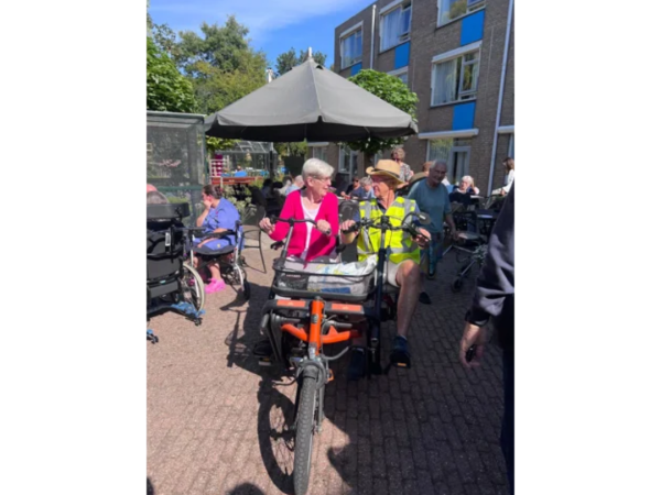 Tijdens het zomerfeest in woonzorgcentrum Sonnevanck in ’s-Gravenzande hebben de vrijwilligers van de Sjaakies samen met een bewoner hun allereerste rit gemaakt op de duofiets. Het startsein is gegeven voor wekelijkse tochten waaraan bewoners en vrijwilligers kunnen deelnemen. En er is nóg meer goed nieuws: dankzij mooie acties en donaties, van de wielerronde in Wateringen tot bijdragen van bruidsparen en bezoekers van het Woudstock-festival, kan er nu ook een rolstoelfiets besteld worden. Met deze uitbreiding kunnen in de toekomst nóg meer bewoners genieten van een frisse tocht in de buitenlucht. Een prachtig initiatief van Lex Thoen, Nick van Vliet en alle betrokken vrijwilligers!