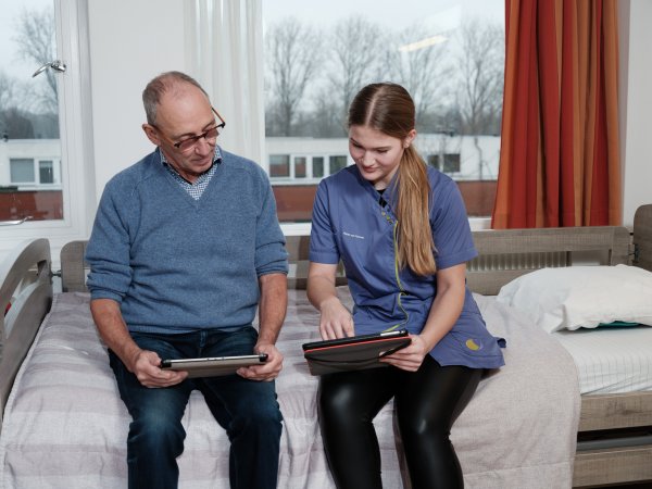 Beeldzorg werkt heel eenvoudig. Voordat u start hiermee ontvangt u thuis uitleg over hoe alles werkt en wordt geoefend met beeldbellen. Heeft u geen tablet? Dan kunt u een tablet van Pieter van Foreest in bruikleen nemen.