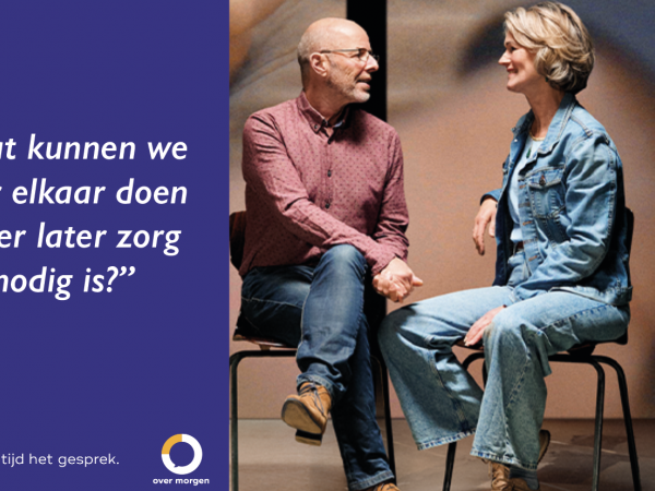 Praat vandaag over morgen; een grootschalige, multimediale campagne met het doel jonge ouderen (tussen de 60-75 jaar) aanzetten tot het gesprek over hun toekomst op drie verschillende thema’s: omzien naar elkaar, gezond & fit blijven en prettig wonen. Daarnaast wil de campagne ook hun naasten (partner, kinderen, vrienden) en maatschappelijke organisaties bereiken. De campagne bestaat uit onder meer tv-commercials, print- en social media uitingen en PR.