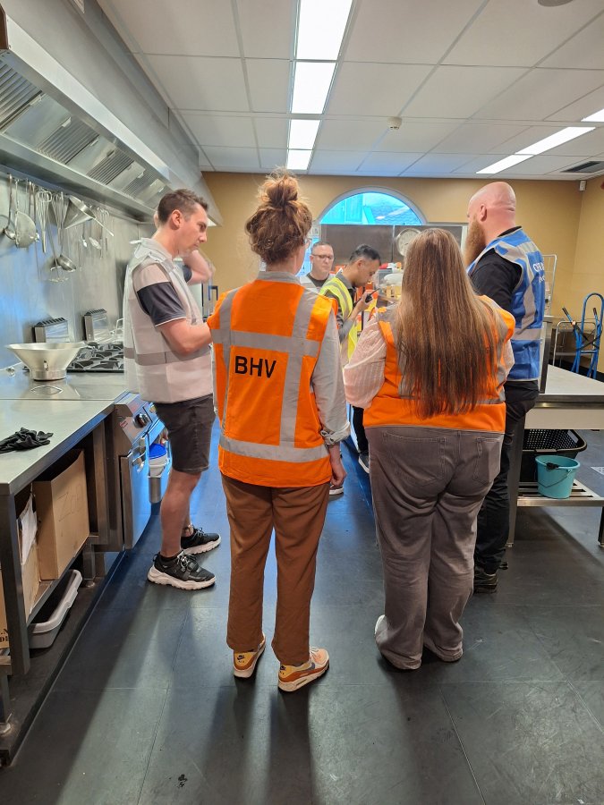 De voorwaarde was dat er tussendoor wel een BHV ontruiming plaats zou vinden. Het theater is verplicht dit een keer per jaar te oefenen met publiek, de oefening werd gepland op 12 mei. Dit is ook de Dag van de Zorg en zo kwamen ze het op het idee om collega's en vrijwilligers die in de zorg werken uit te nodigen voor een filmvoorstelling. Er werd voor een drankje gezorgd en de film van Teun Toebes: Human Forever werd getoond. De BHV oefening vond plaats zoals het bij een echte melding ook zou plaatsvinden, inclusief ontruiming van het gebouw. Gelukkig zat het weer mee en dus was het niet zo erg om naar buiten te gaan voor de oefening. De oefening is dan ook succesvol verlopen en er kan teruggekeken worden op een gezellige avond!