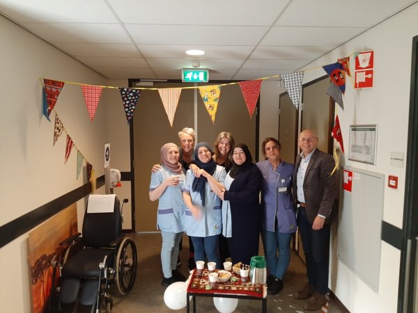 Vanmorgen werden de collega's van locatie Akkerleven, die aan de Ramadan hebben meegedaan, verrast met thee, zoet en slingers. Collega's trakteedren iedereen op heerlijke Baklava!