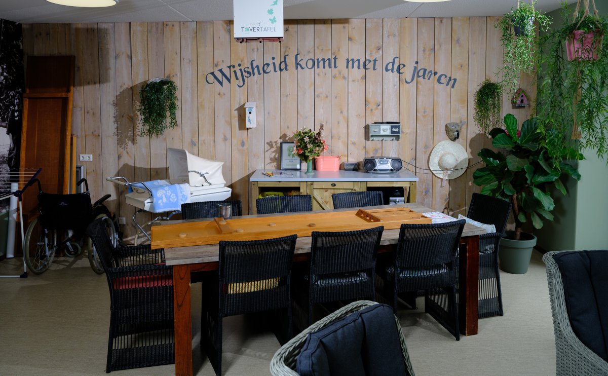 De Terwebloem heeft in de tuin een mooie tuinkas waarin gewerkt kan worden, maar omdat het niet voor alle bewoners mogelijk is om zelfstandig naar buiten te gaan en gebruik te maken van de tuinkas, besloten ze een ruimte te herstijlen tot activiteitenruimte voor ondere andere tuinactiviteiten. Zo kunnen bewoners die niet zelfstandig in de tuinkas aan het werk kunnen ook genieten van een buiten activiteit.