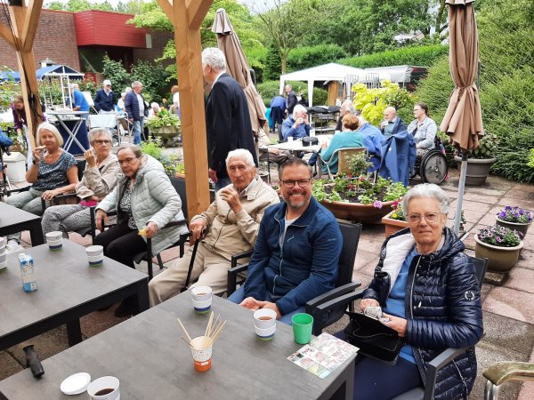 Afgelopen woensdag 22 mei organiseerde Ontmoetingscentrum Naaldwijk een evenement voor hun bezoekers en mantelzorgers. Onder de noemer “Zomer in ons bol” werd het tuinseizoen geopend. Met ‘s ochtends veel regen voelde het nog niet als de zomer in ons bol en was het spannend wat de dag zou brengen. Maar vanaf het moment dat de bezoekers er waren was het droog en zelfs af en toe een zonnetje! De bezoekers en hun familie, vrienden en kennissen hebben enorm genoten, er waren poffertjes, live muziek, een rommelmarkt en rondleidingen door de mooi bijgehouden tuin. Het was een geslaagde middag!