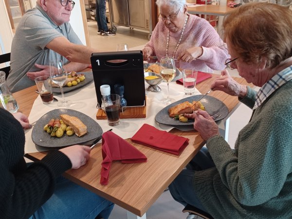De dag begint met heerlijke koffie en wat lekkers erbij. Vervolgens genieten de dames van een relaxte nagelverzorging, terwijl de heren samen met de leerlingen een spel spelen. Om 12.00 uur is het tijd voor een bijzondere ervaring in het schoolrestaurant, waar de leerlingen speciaal voor de bezoekers hebben gekookt. Net als in een echt restaurant worden de gerechten keurig geserveerd en wordt er genoten van een drie gangen menu. Het is mooi om te zien hoe jong en oud genieten van elkaars gezelschap. Voor de leerlingen is het een leermoment en de bezoekers kijken altijd uit naar deze gezellige uitjes.