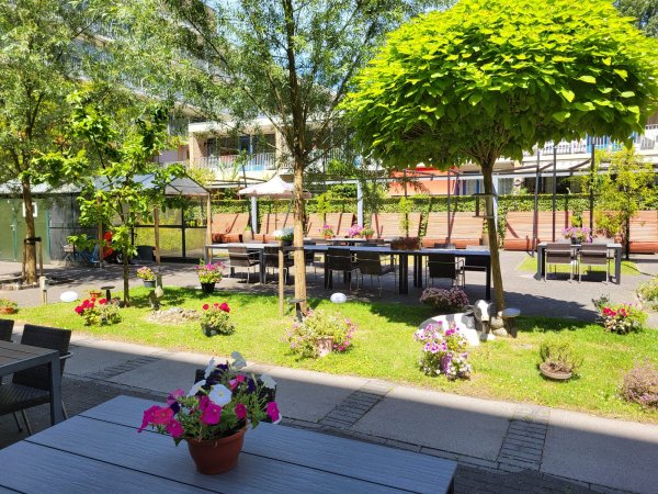 Met het mooie weer van de afgelopen periode is de vernieuwde tuin al volop in gebruik. Bewoners genieten zichtbaar van het buiten zijn: even een frisse neus halen, door een praatje te maken of gewoon heerlijk rustig genieten van de zon.