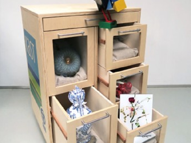 De Kunstkast maakt beeldende kunst toegankelijk voor iedereen en nodigt uit tot ontmoeting en gesprek. In een kast op wieltjes bevinden zich vijf laden, elk met een kussen waarop een kunstwerk ligt. De lades kunnen uit de kast gehaald worden; elk beeld komt zo letterlijk op tafel, waar het van hand tot hand kan gaan. Want kijken doe je niet alleen met je ogen, maar ook met je handen – net zoals de kunstenaar het ook met zijn handen heeft gemaakt.