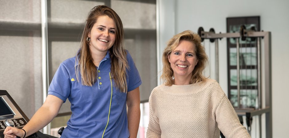 Jitske: ‘Het mooie aan mijn vak als fysiotherapeut is dat we, samen met het team, er altijd naar streven iemand op de beste manier te helpen. Of dat nu individueel is of in een team. We zijn continu aan het observeren en bijsturen om te kijken of de behandeling aangepast moet worden, zodat het nog beter voor de cliënt wordt en de behandeling hem/haar uiteindelijk ten goede komt. Het draait immers om de cliënt. De cliënt doet in de praktijk diverse oefeningen en we geven ook oefeningen mee voor thuis. Denk bijvoorbeeld aan krachtoefeningen voor de benen. Deze kunnen zittend op een stoel of op de rollator gedaan worden. Het is wel belangrijk dat dit thuis ook gedaan wordt om zo het beoogde resultaat te halen. Daarnaast geven we eveneens oefeningen wanneer iemand moeite heeft om zich van de rollator zich te verplaatsen naar een scootmobiel.’