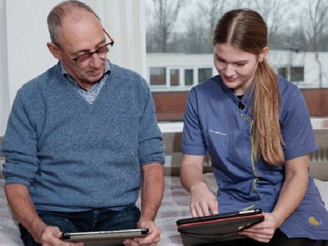 Via beeldzorg helpt de medewerker u met uw zorg zonder dat iemand bij u thuis langskomt. Bijvoorbeeld om mee te kijken of u de juiste medicijnen inneemt of gewoon een contactmoment in de ochtend of avond. Zo ontvangt u de noodzakelijke zorg, terwijl u toch de regie in eigen handen heeft. Beeldzorg kan bijdragen aan het zo lang mogelijk thuis blijven wonen met de zorg, zoals u die gewend bent, dichtbij.